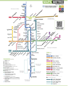 Getting around Medellín is made easy by using the Medellin Metro System, which is made up of trains, aerial cables, buses and a tram. Details about all the lines, connections, routes, schedules, prices and services can be found at https://www.metrodemedellin.gov.co/en/users/integrated-system.
